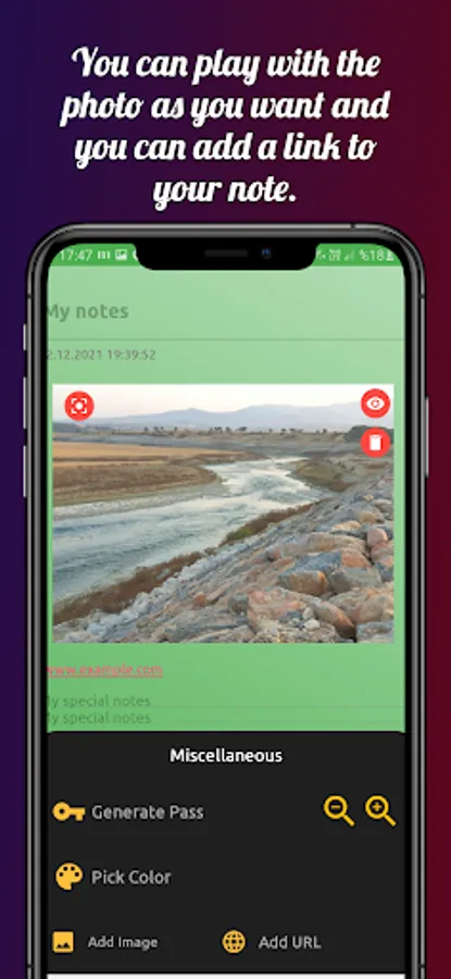 Then you can add secret notes. No Add this app. You can enter with your fingerprint in notes safe app.However you can search notes,backup database,restore database. You can color your notes and sort them by color. If you want you can add image notes and you can edit image. Also you can add url. You can view your notes as a list or as a grid. You can use notes safe as Notebook, safe note, Encrypted Notepad, Safe Notepad, Locked Notepad. However you can use it Safe Notes, Shopping list, Shopping notes and image notes. If you want you can use as Work list,Work notes, Lecture notes. Color notes provide you convenience.