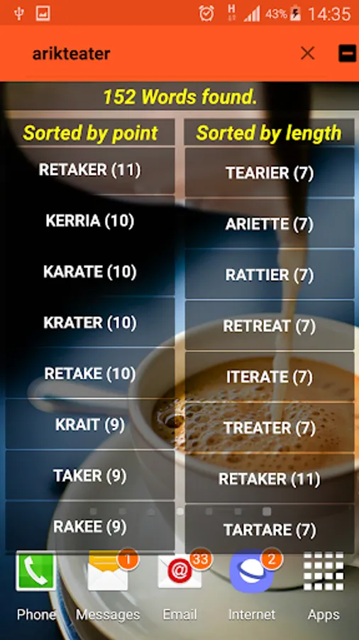 This app can be used as a scrabble helper and word finder, as well as a word maker and word generator. It can also be used as a word factory and scrabble trick or word trick. Besides all these, it can also be used in word puzzles and word help or word production. This application will give you word tips in all kinds of word applications such as vocabulary and will help you to find words.