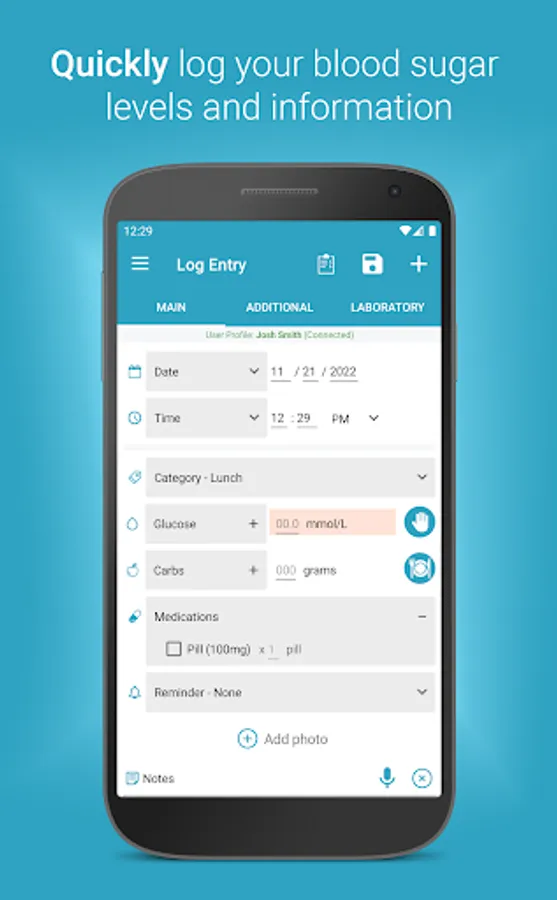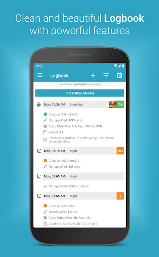 + Bluetooth Integration – connects to some of the most popular bluetooth glucose meters.