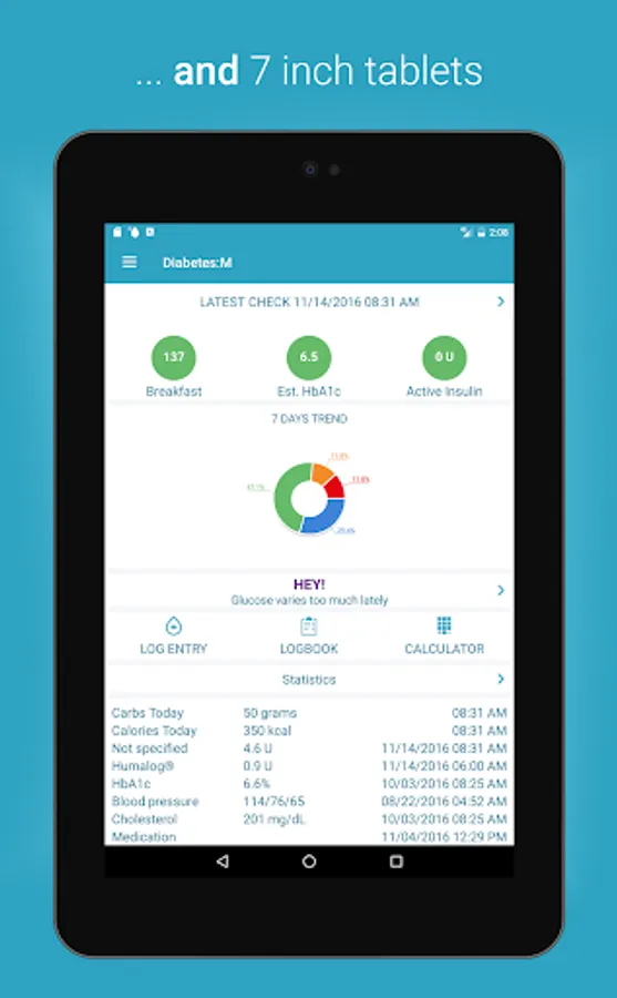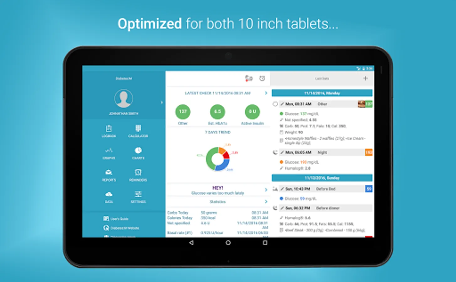 Designed for both smart phones and tablets, this application will help you manage your diabetes better and keep it under control. Whether you are Type 1 or Type 2, have Gestational Diabetes or just want to help and monitor a family member, this is the logbook app for you.