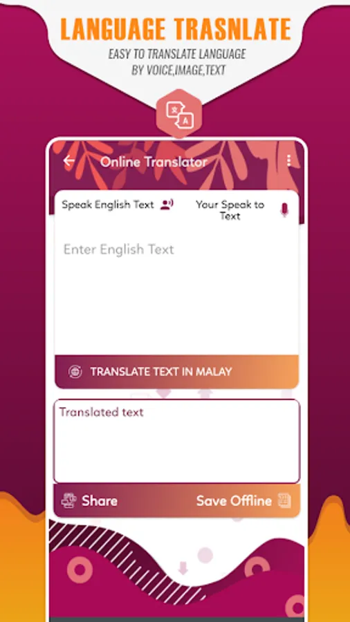 English to Malay Translator help to translate your word & sentence in your language & Malay Dictionary helps to learn new words daily for vocabulary improvement.