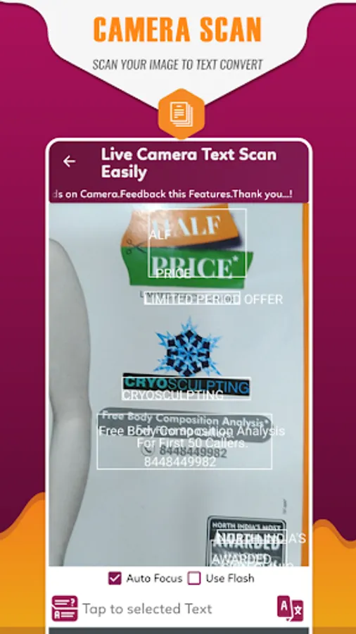 You can convert an image to text. World the highest speed reading from Image to Text. It turns your mobile phone into a text scanner and translator.