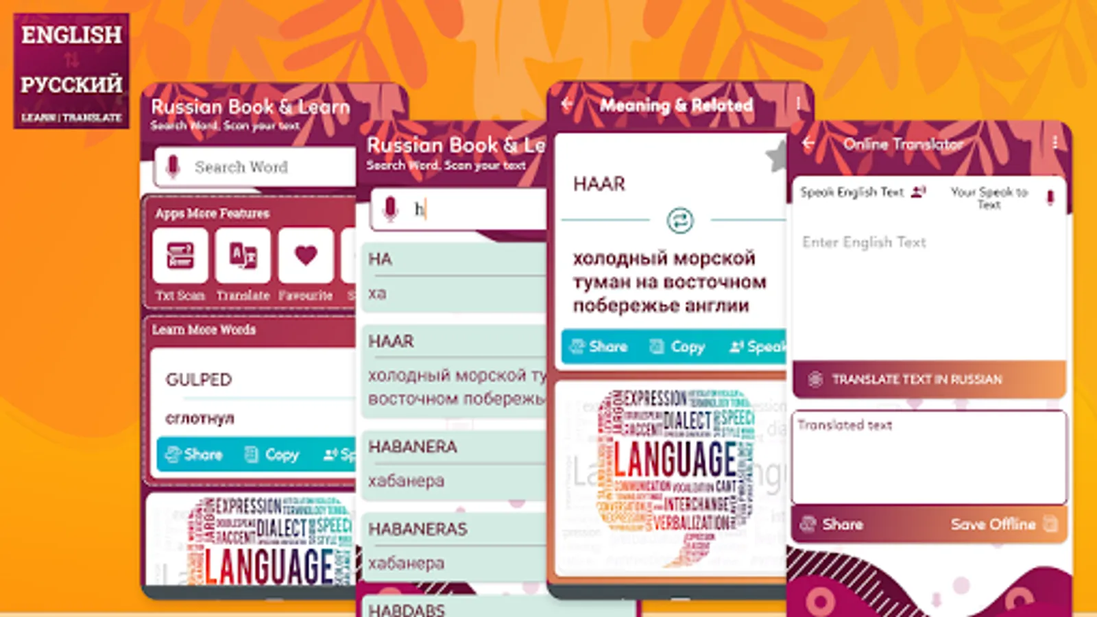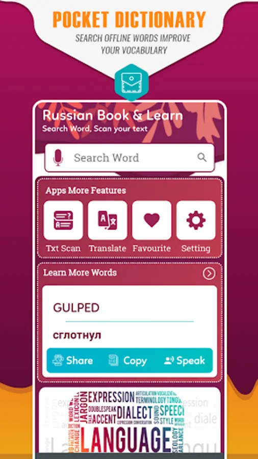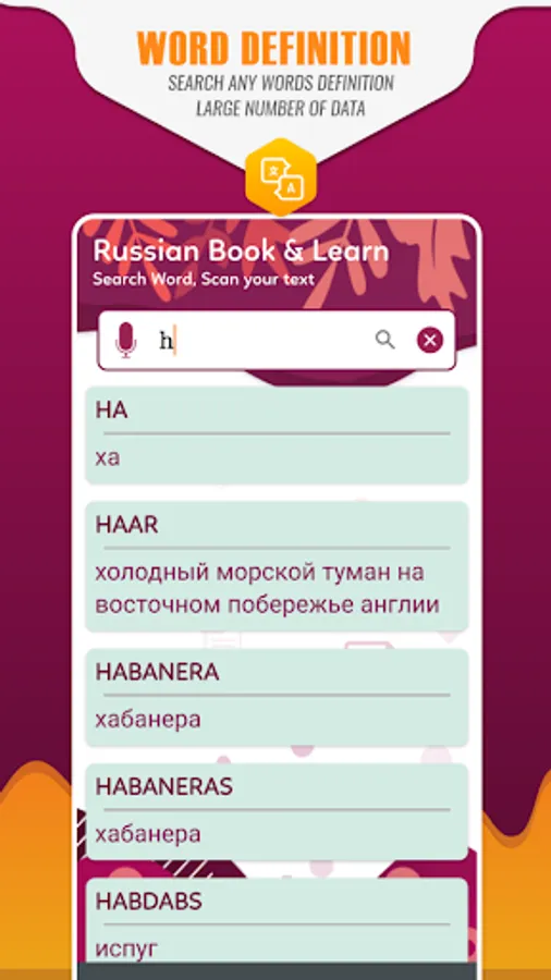English to Russian Translator help to translate your word & sentence in your language & Russian Dictionary helps to learn new words daily for vocabulary improvement.