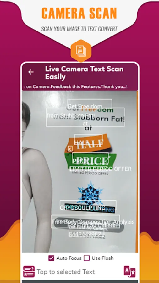 You can convert an image to text. World the highest speed reading from Image to Text. It turns your mobile phone into a text scanner and translator.
