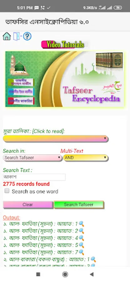 "Tafseer Encyclopedia" is world's first islamic offline app offering fulltext search of the gigantic 14 volumes "Tafseer-Ibn-Kaseer" as well as the world famous "Tafseer Fat-hul Majeed" combinely just in seconds. It also provides 'multitext search feature' allowing you to search up to 4 words using the logical AND/OR operators to make the search operation as flexible as you want. Every single word in the app are cross-linked to the central database letting you perform search operation on any word as you read in realtime.