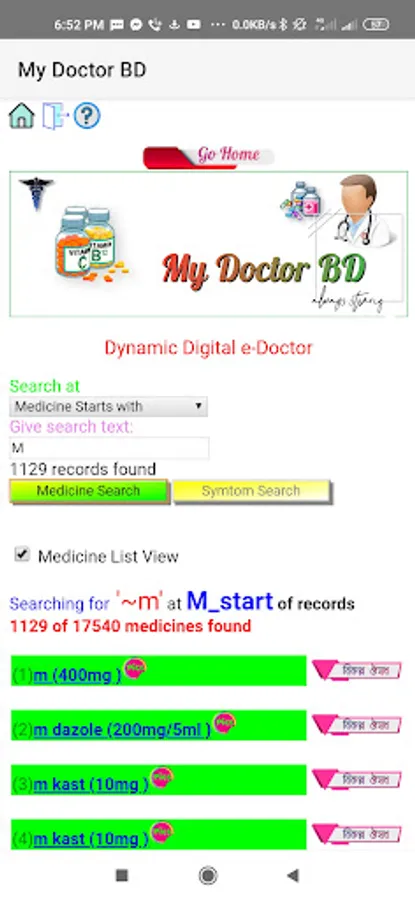 "My Doctor BD" is a powerful medical app presenting 17540 medicines with additional info like price , disease indication, Company name, generic name and many more. This app provides very powerful search features making it really easy to find the medicines you want.