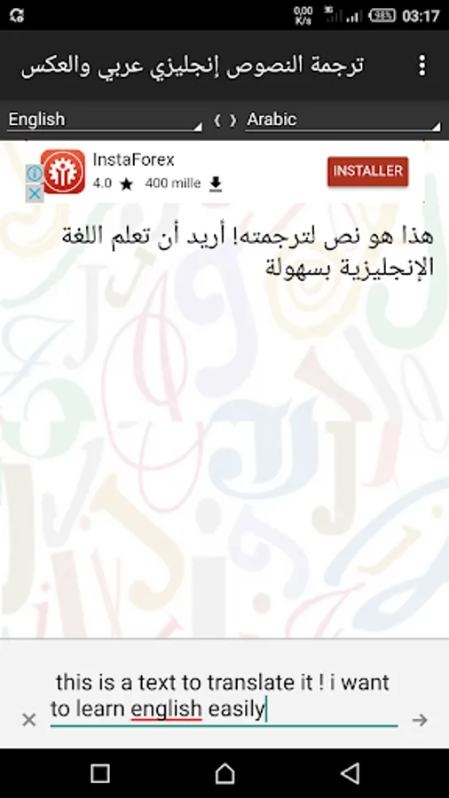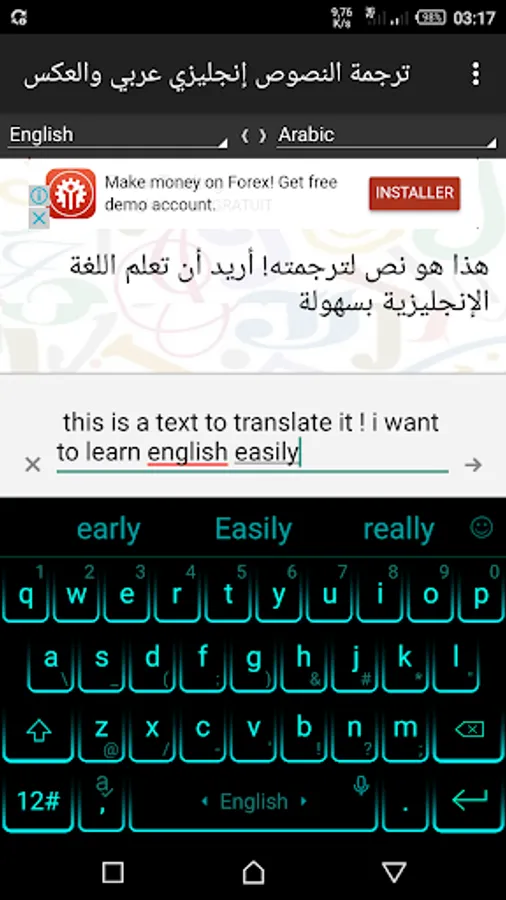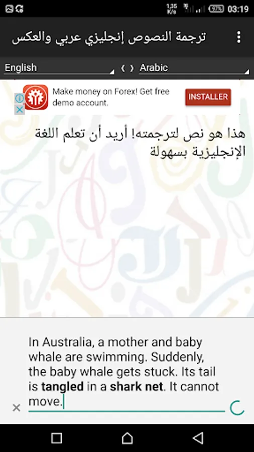 You can also reverse the choice of translation, ie translation from Arabic to English or from French to English with the click of a button.