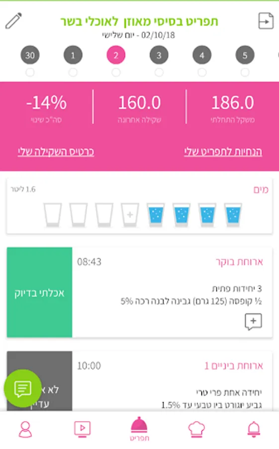 Every step on you to enter personal diary and see one page simple and clear way how the daily menu looks