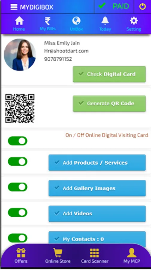 Can make your online digital visiting card with QR code that some one can scan and can save.