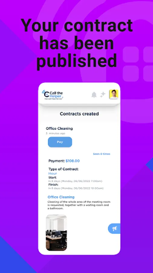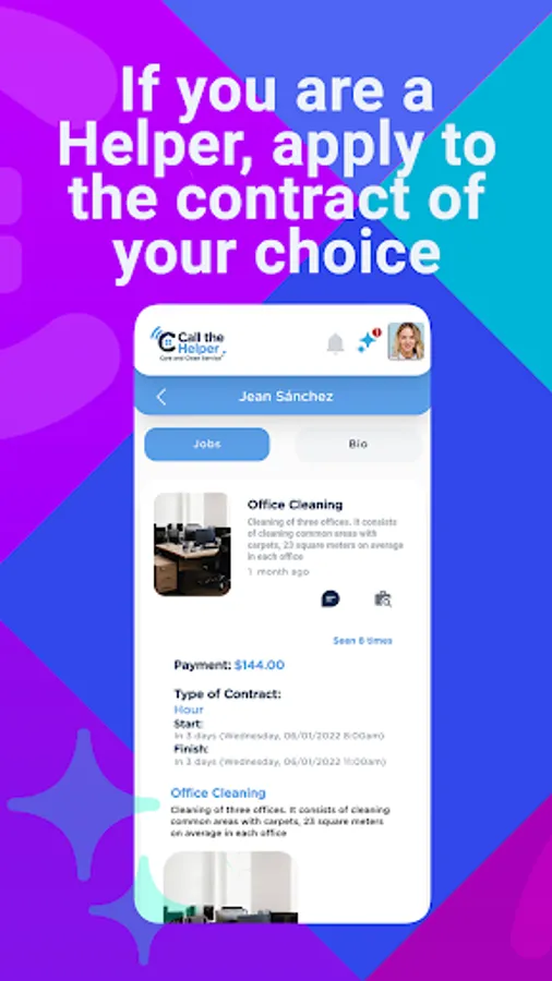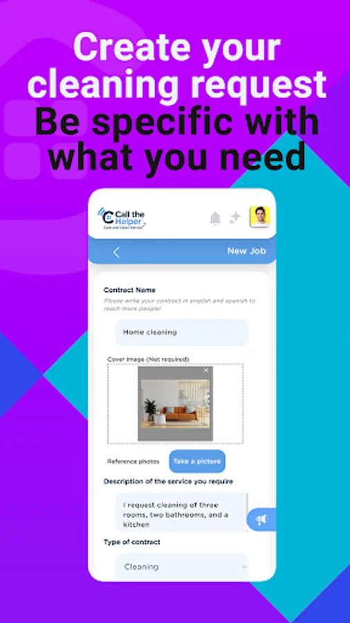 Call The Helper is a technological application of a collaborative nature, where you can offer and demand a wide variety of cleaning and disinfection services that simplify and optimize your daily life, allowing you to share more with your family, friends and also improve the environment of your home. and that of your company making it more productive. With our application, you can book experienced service providers, "Helpers" who give you confidence to clean or disinfect your home or business. Call the Helper allows you to comfortably manage the reservation of your services Call the Helper also functions as a mechanism to generate income, in our portal of cleaning service providers "Helpers" you can offer your Cleaning and Disinfection services capturing a wide variety (Homes and Companies) for this it is only necessary to create your profile in our app. Call the Helper App has high standards of quality and protection in the treatment of information. Call The Helper App is available only to customers from San Diego County, CA in the United States. How does it work ? 1. If you are a home or business customer that requires disinfection or cleaning services, download the Call The Helper App, register and select your preferred service and you can even choose the helper of your choice. 2. Choose how much time you need, when, where and even the Helper that will provide the service, if it is a company or Home. 3. If you are a Helper (service provider) in the cleaning or disinfection area who wishes to provide services through the App, download the Application, register and look for a client who is available, take it or simply wait for a client in home or company select you according to your experience and proximity to the place of service. 4. Payment for our services will be made by credit card, debit card or virtual wallets through the App. 5. You will receive a notification by SMS and email to confirm your registration in the App. 6. After receiving the service, you can rate your Helper and/or Client. For more information, contact us by email: info1@callthehelperllc.com or WhatsApp (619) 730-0680