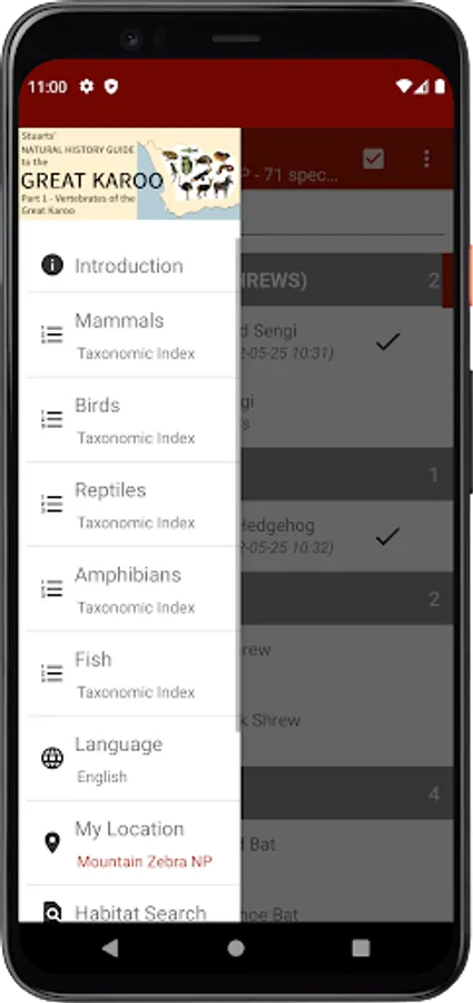 Discover all there is to know about this unique and vast 400 000 square kilometre semi desert. This app covers the species found in the region (from fish to mammals) and a detailed description of the landscape, geology and climate. Find species for specific National Parks - Camdeboo National Park, Karoo National Park, Mokala National Park, Tankwa Karoo National Park, Mountain Zebra National Park and Augrabies National Park.