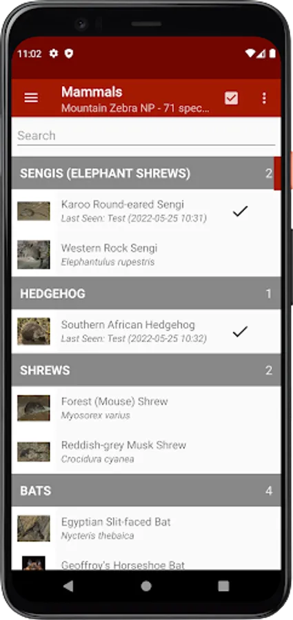• Search for species found in a specific habitat (Rocky hills, Pans, Freshwater, Dry river beds, Woodland, Open plains, Human settlements).