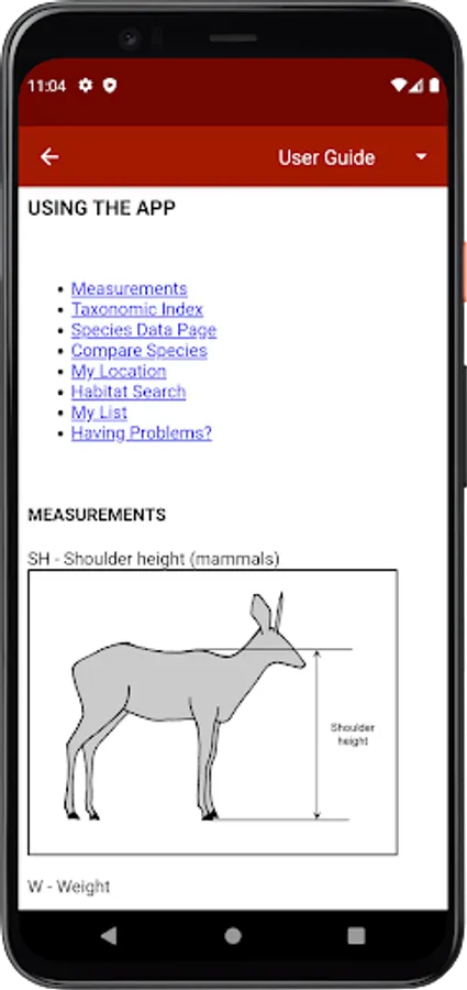 • Species split into groups (Mammals, Birds, Reptiles, Amphibians, Fish)