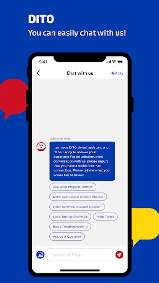 • Option to file a report when you encounter problems or difficulties with DITO services.
