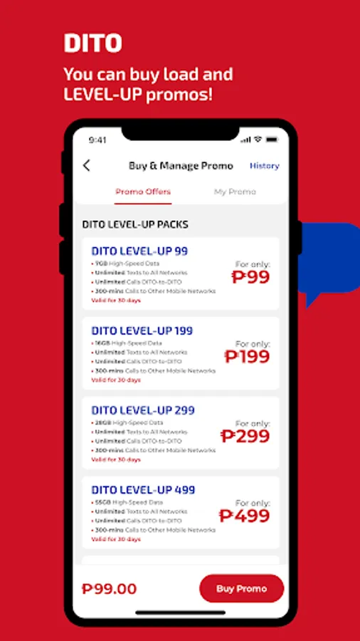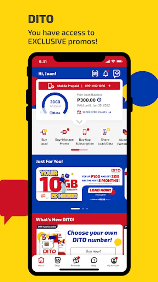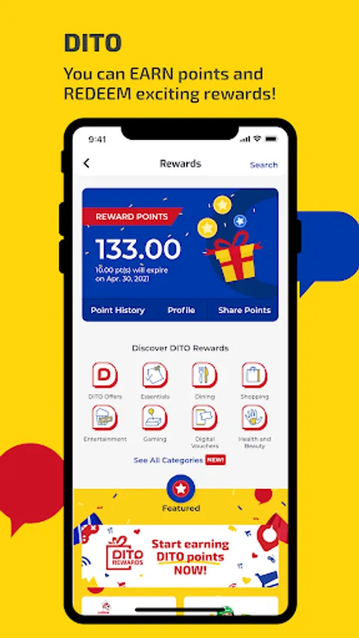 • Earn DITO points when you buy load, buy promos, or update your DITO Rewards profile.