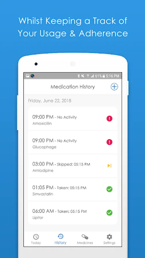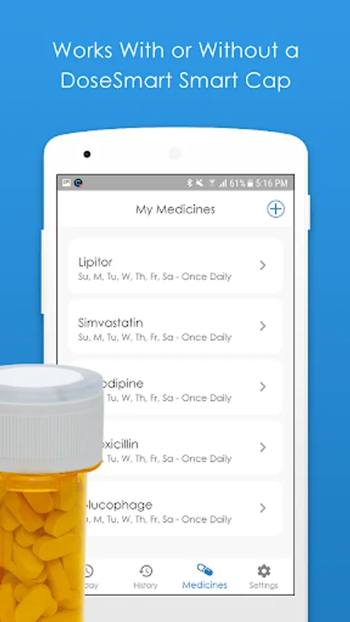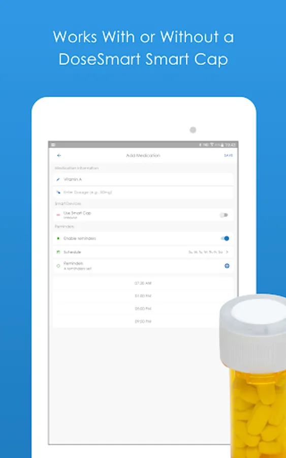 DoseSmart helps you remember to take your medication. With easy-to-customize schedules and support for DoseSmart Brand Bluetooth-enabled dispensers, you'll be in-the-know about your medication history. Be reminded at specific dates and times. Receive texts, phone calls and email reminders if you forget your medication. You'll be notified even if your device isn't on the network!