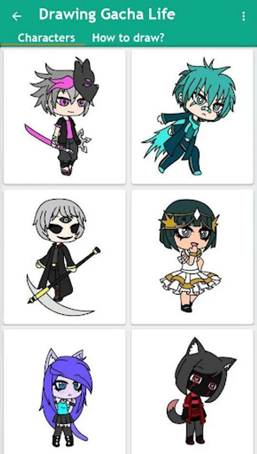 The How to draw Gacha Life application is not a game, this application was invented with the aim of developing fan art in drawing. If you are a fan of the game Gacha Life, then for sure it will be interesting for you to draw cute or daring characters on your own in your album.