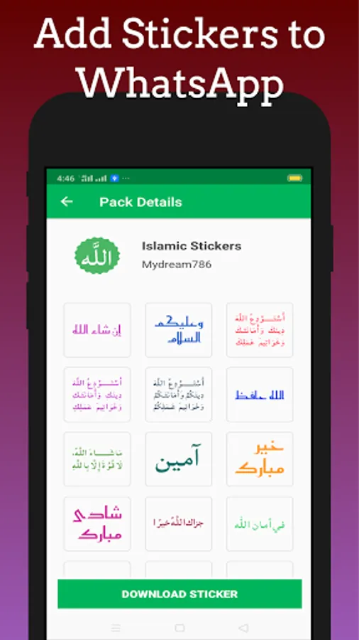 This sticker pack is created to make it easy for people to send greetings in arabic/urdu. As we greet people frequently, we can greet them in Arabic text