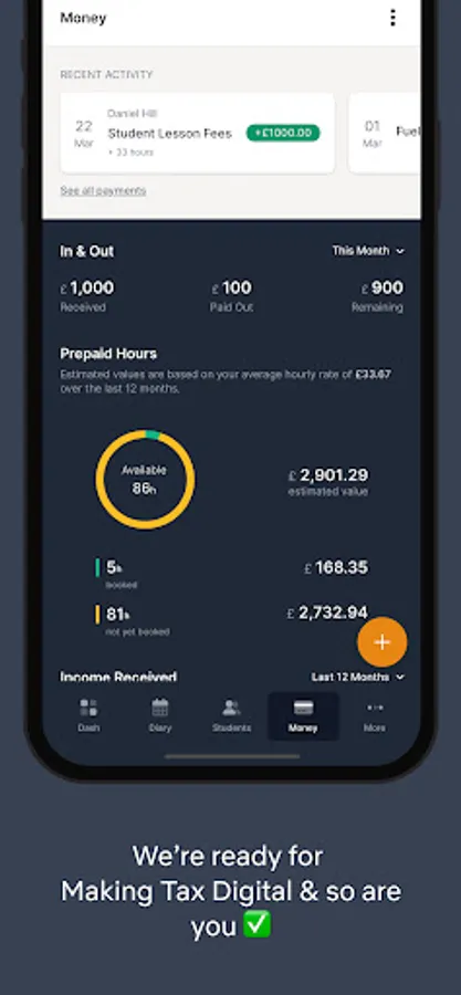 The MyDriveTime MONEY module ensures you always have a clear picture of your finances. Record your lesson income and track your expenses as they occur. Combine the two for the preparation of your accounts, ensuring that your tax return is painless, accurate and complete.