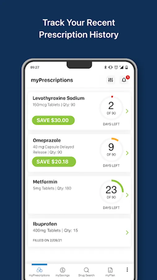 Keep track of your prescriptions with myDrugCosts. Any prescriptions you filled will show up in your myDrugCosts account along with details on days left, where the prescription was filled, how much you paid, and any savings opportunities for your current prescription drugs.