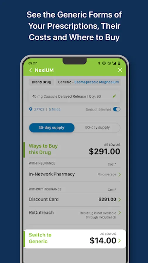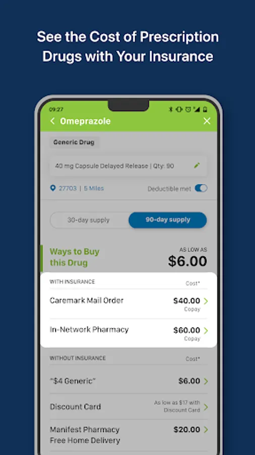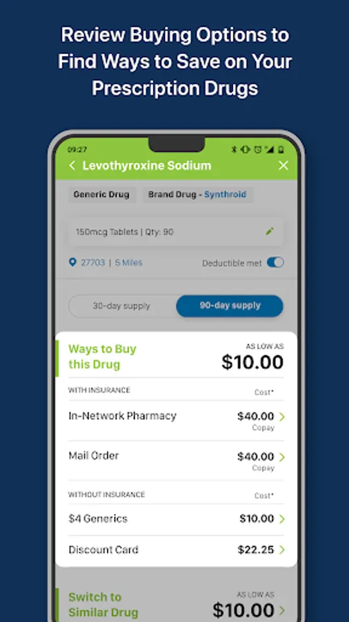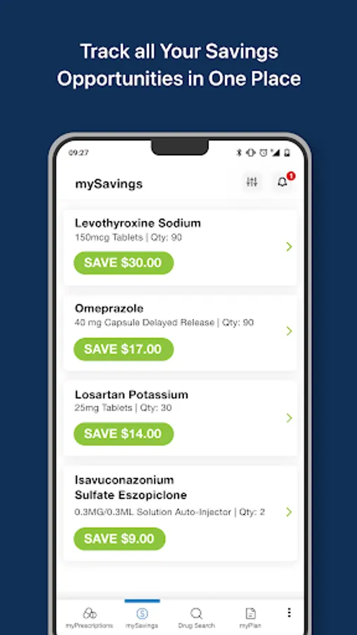 Saving money on your prescription drugs has never been easier. With a few quick taps, you can see a list of buying options for any drug as well as receive personalized savings notifications for your current prescription drugs.