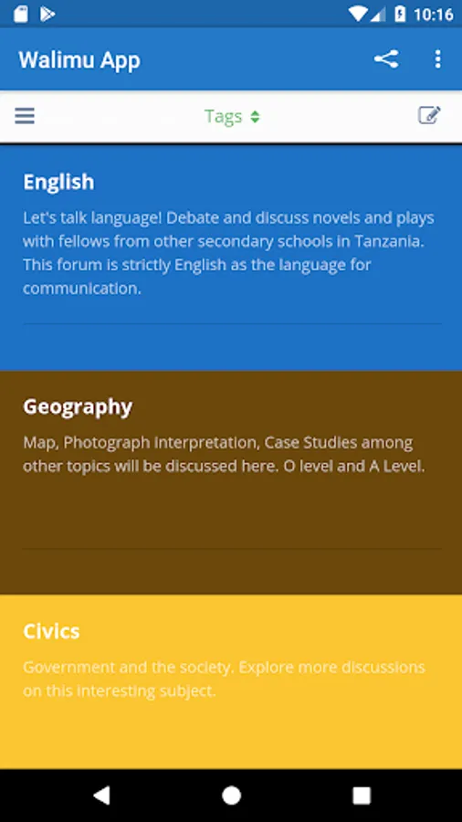 Walimu App ni application ya simu inayokutanisha walimu kutoka maeneo mbalimbali ili waweze kujadiliana maswali, taarifa na pia kushare materials yatakayowasaidia kwenye ufundishaji wao.