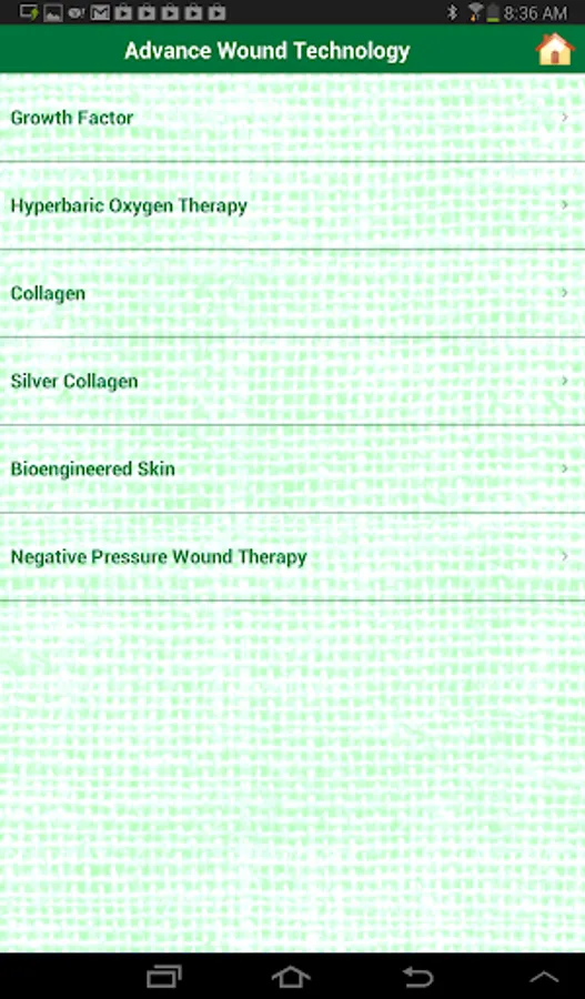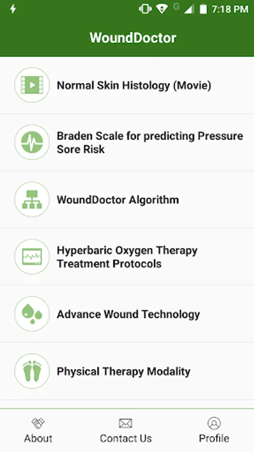 This comprehensive, all-inclusive Wound Care resource app includes an Algorithm for Wound Management Clinical Guidelines in a drill-down table format, Search interface to find Diagnosis, Glossary, movie on Normal Skin Histology, Hyperbaric Oxygen Therapy, Wound Dressings, Braden Scale scoring, Advance Wound Technology, Physical Therapy Modality and Pop up Quiz.