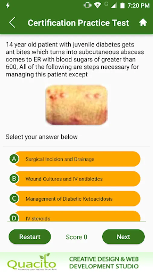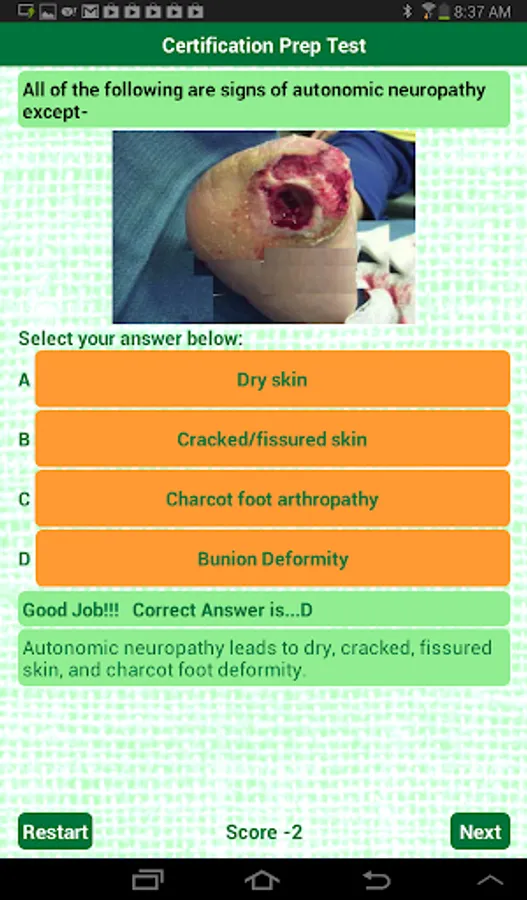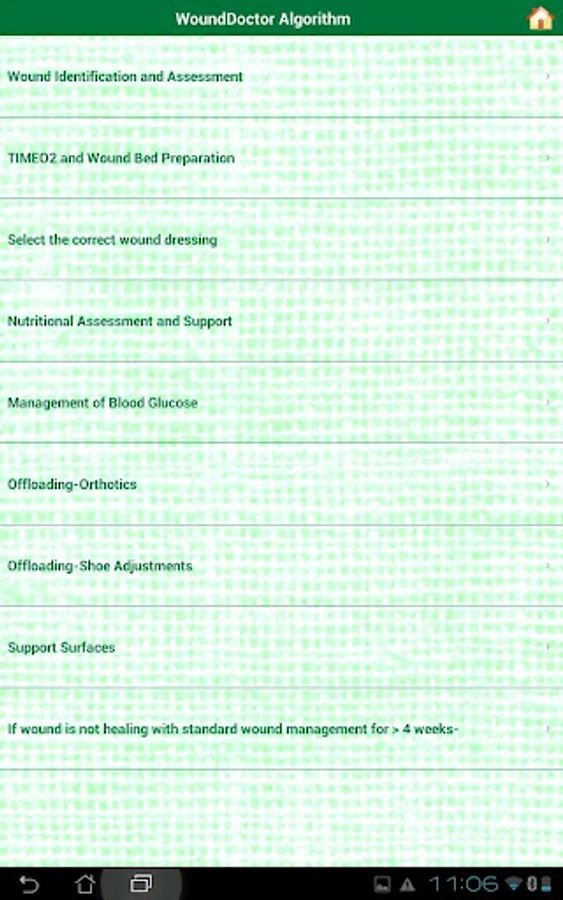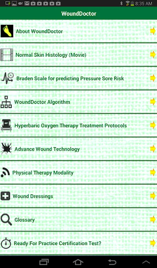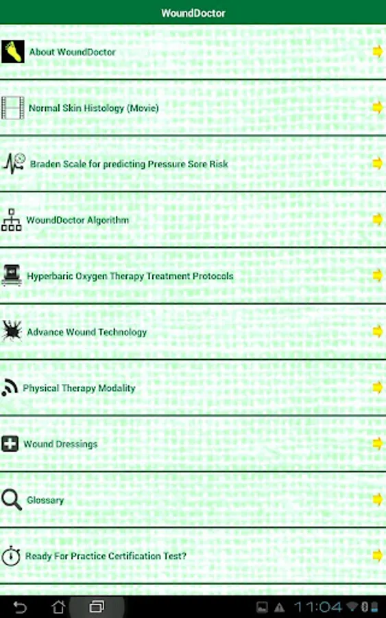 WoundDoctor Quiz will allow you to test your knowledge in wound care before taking wound care certification exam (answers included). WoundDoctor also has an extensive assortment of photos, tables, diagrams, etc. for aiding with learning.
