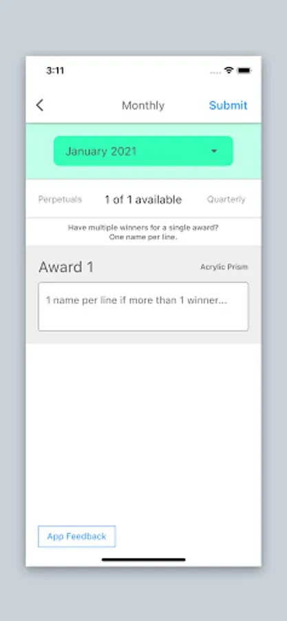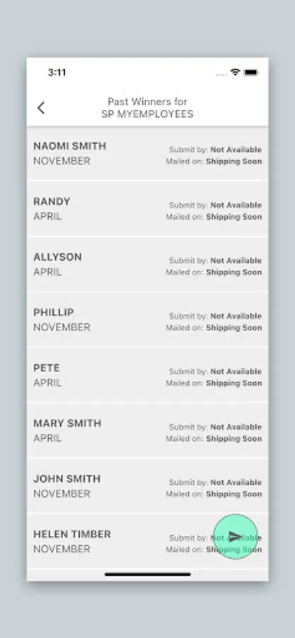 The MyEmployees App allows MyEmployee's clients to see past winners and submit new ones.