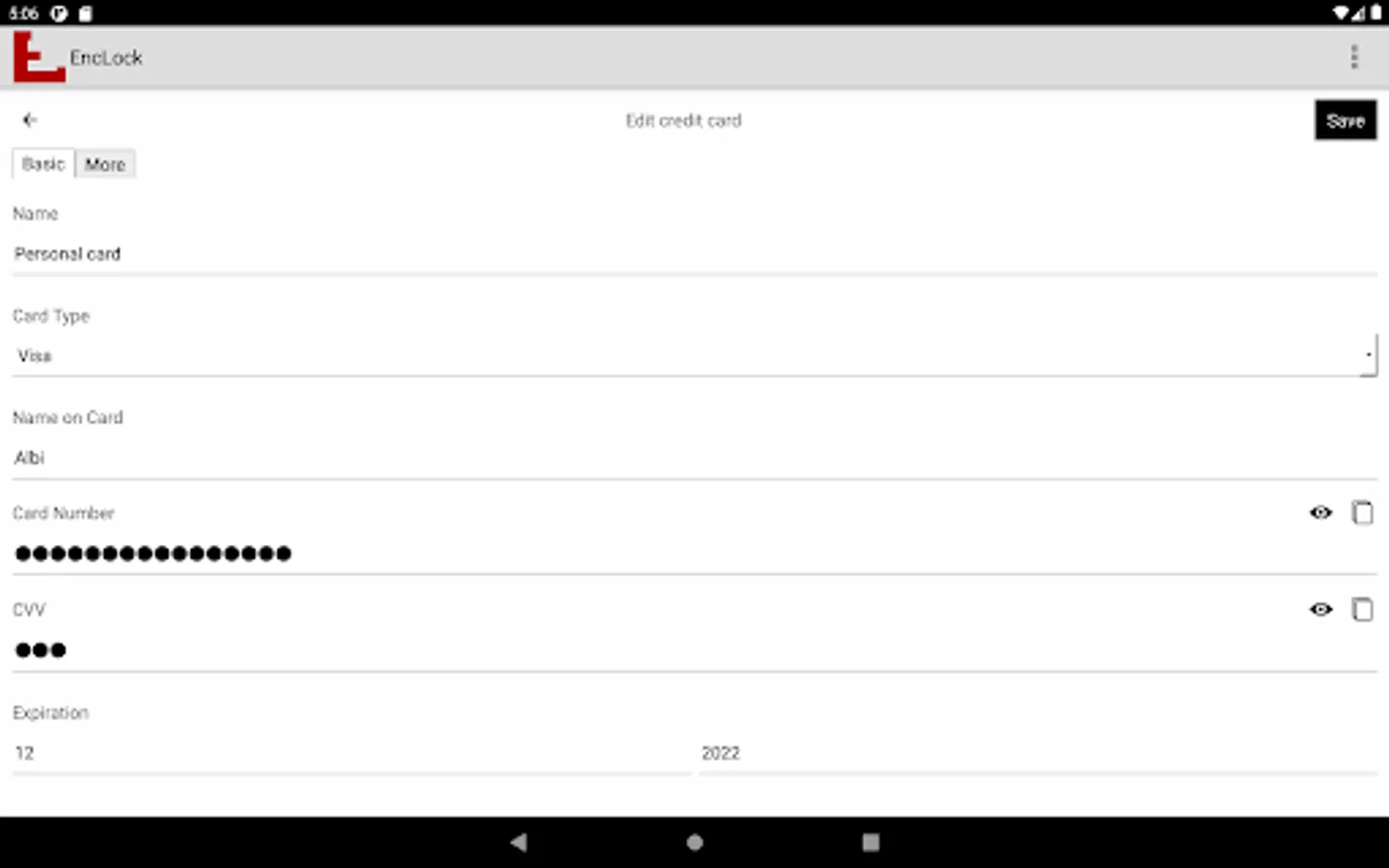 EncLock is a free security application that is commonly known as a Password Manager. However, EncLock is designed to be more than that and allows you to safely store many types of information with it such as: passwords, files, credit cards, ID cards (such as driver’s license, insurance cards, etc.), addresses and personal notes.
