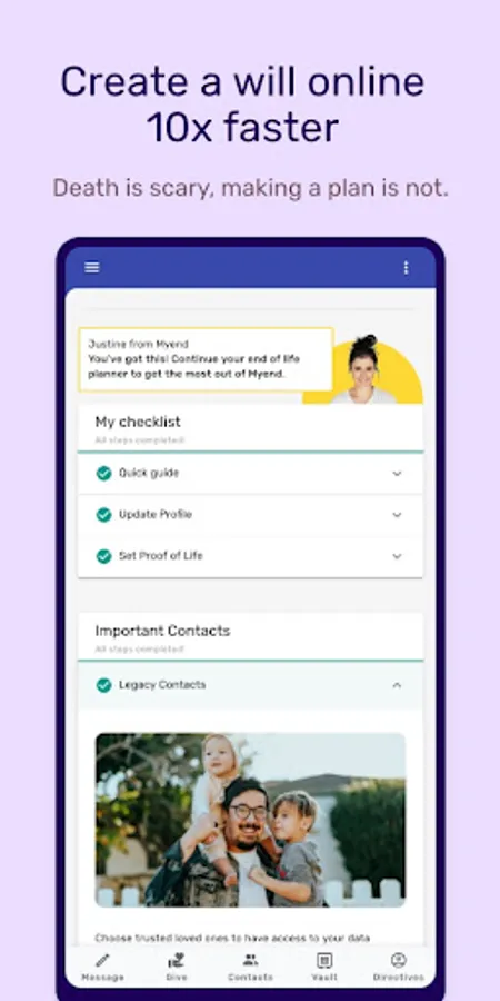 Begin your journey with end-of-life planning, secure important documents, and appoint Legacy Contacts. Take control of your future and give your loved ones peace of mind.