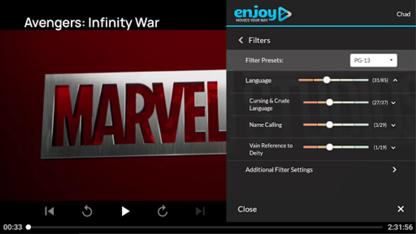 Start streaming through Enjoy to mute the crude and abusive language automatically and skip adult content* so you can enjoy cringe-free movie time with your family again. If someone asks, “How can I get a clean version of Netflix?” You’ve got the perfect answer.