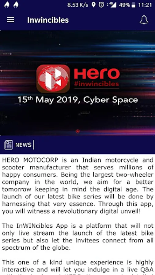 Download the app and get updates about various ongoing and upcoming events related to Hero.