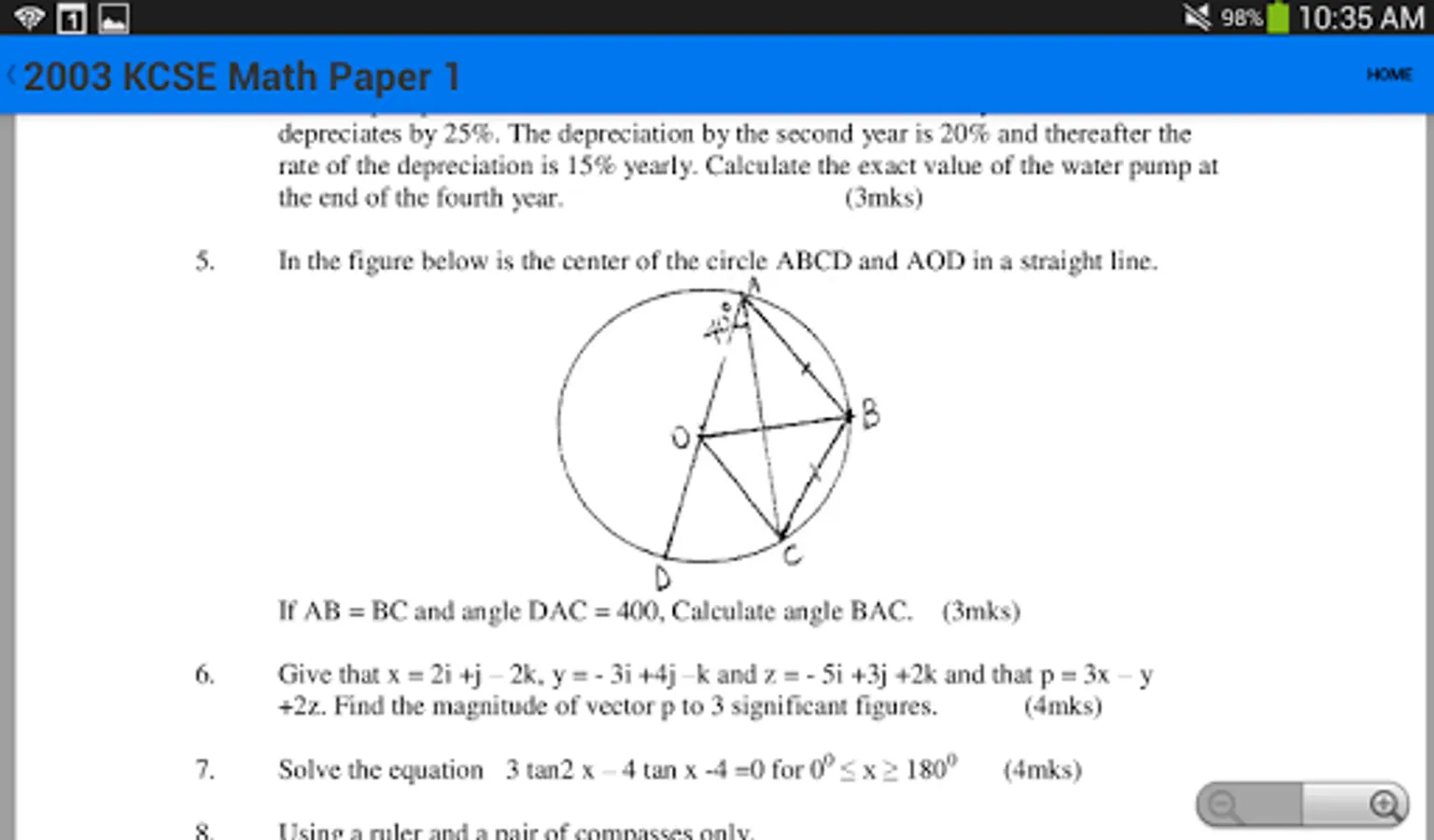 "KCSE MATH Questions" application is a collection of basic math questions from KCSE exams from 2012-1995. This app provides availability of math national exams to all students on their mobile devices (tablets, smartphones). Students can now use this app to practice to solve Kenya (KCSE) exams related problems that are most likely to be encountered in KCSE exams.