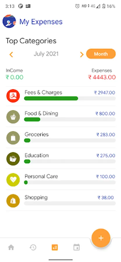- Expenses summary in Month, Week, and Day wise's