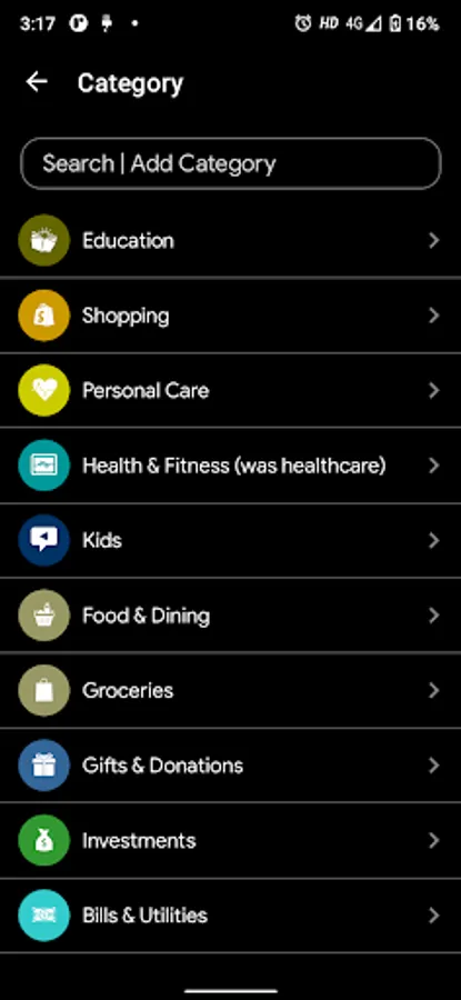 - Color picker for change category color