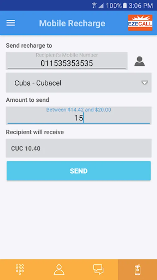 EzeCall Dialer is the ultimate application for low-cost Long Distance calls. This dialer simplifies the long-distance calling so nicely and still providing all the flexibility that you may need. No more pins to remember, no access number to dial or phone numbers to remember, not even the speed dial numbers to be remembered or dialed. You can even use EzeCall Dialer to make local calls over your internet connection when you are running out of allowed minutes in your wireless plan. EzeCall Dialer provides you different calling methods to meet your wireless plan and calling needs. Calling methods include Local Access, Callback and Internet Calling. EzeCall Dialer also allows you to transfer your account balance to friends and family in over 110 countries around the globe on their cellular accounts.