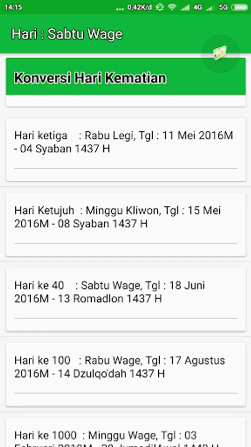 Conversion of the anniversary of the death of Pitu dina, nyatus, nyewu etc.
