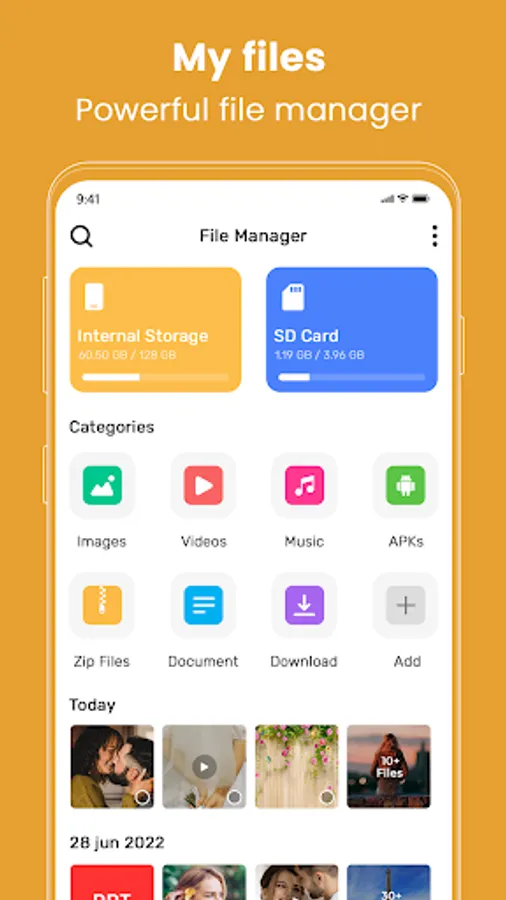 "My Files" manages all the files on your smartphone, just like a file data explorer on your computer.