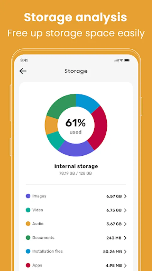 - Free up storage space easily by tapping the "Storage Analysis" button on the main screen.
