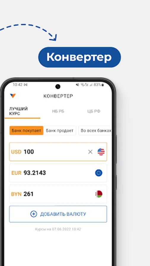"Myfin.by - exchange rates, currency converter, ATMs" is a mobile application of the Myfin.by portal, part of the Myfin Group, operating in 7 countries