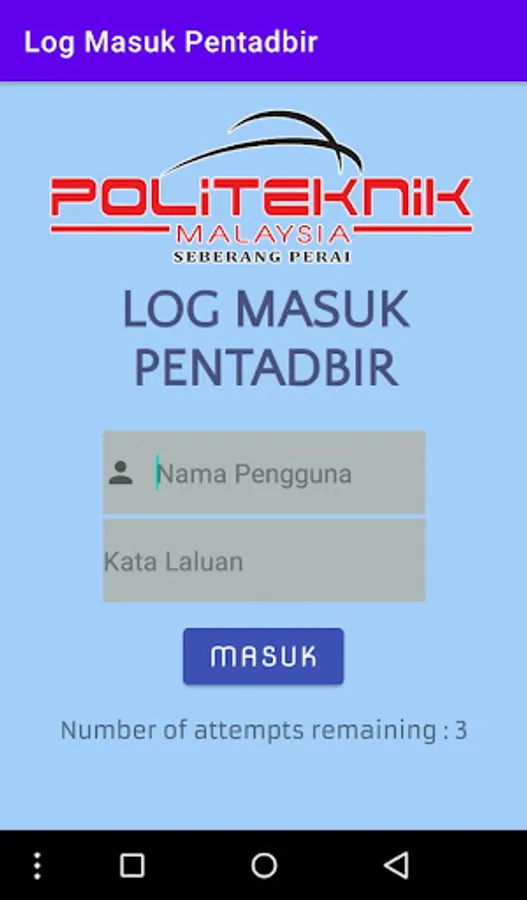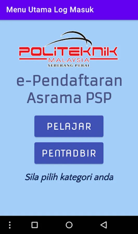 Aplikasi ini mempunyai dua bahagian, iaitu bahagian pelajar dan bahagian pentadbir.