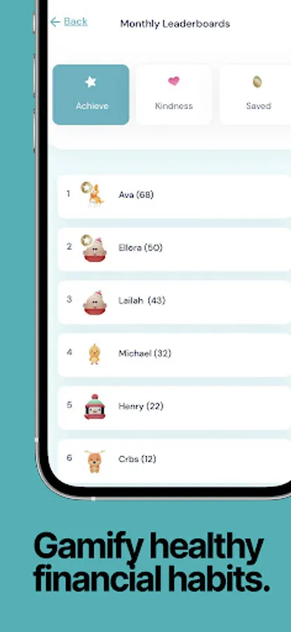 Achievement and depression are inversely related. Kids NEED to achieve and My First Nest Egg gives them that opportunity and then recognizes them for those accomplishments. My First Nest Egg has a community page with monthly leaderboards which track Achievements, Acts of Kindness, and Instances of Saving (not how much, how often). Kids can be inspired by other kids working towards the same lifelong habits. Parents can give their kids nicknames for the leaderboard, we use emojis instead of photos, and you will be asked if you want to opt-into the board.
