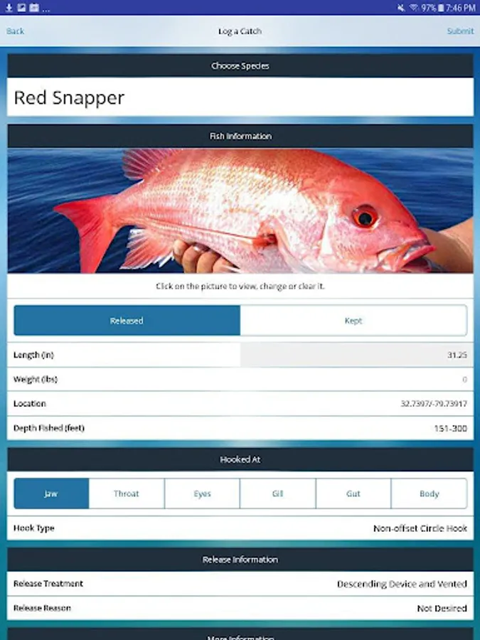 Anglers can use the mobile app or website to log information about trips and catches to help improve data used to manage our fisheries. MyFishCount is a tool that allows anglers to review past logged trips and catches. Since MyFishCount records information about time, location, and other details about the catch, anglers can use this information to discover trends or patterns from good and bad fishing days. More information about the project can be found on the South Atlantic Fishery Management Council’s website.