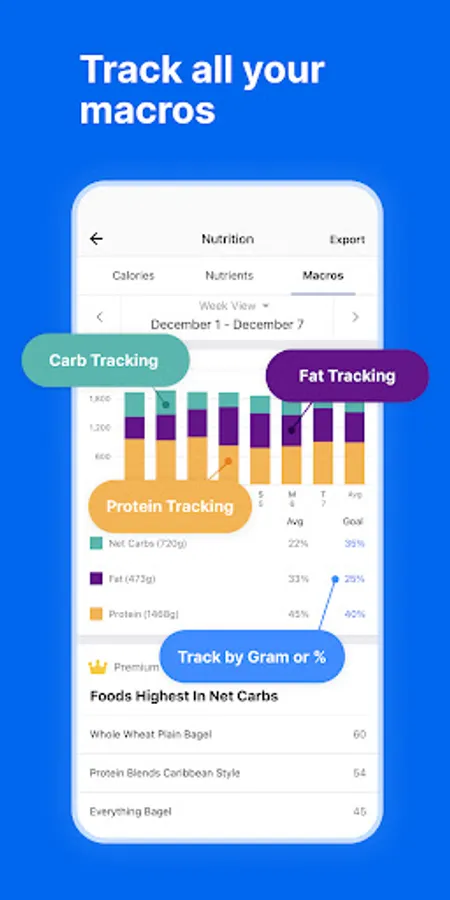 ■ Macro Tracker – See carbs, fat & protein breakdown by gram or percentage—no need for a separate carb tracker, keto diet, or health and fitness app!