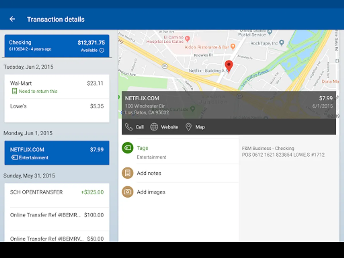 Add Tags, Notes, Images & Geo-Information: By enhancing transactions with custom tags, notes or photos of a receipt or check, you have the ability to stay organized and find exactly what you’re looking for when searching through your finances.