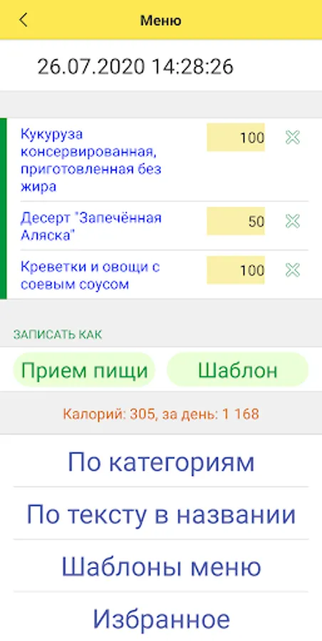 Also implemented the ability to create templates in which you can select frequently used menus. Thus, you can create your own dishes according to your own recipes.