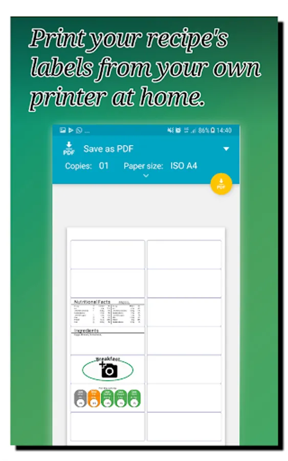 Do you make your own food? Love recipes? Now see the macros for the whole recipe with #labely's automatic calorie counter, just enter your ingredients and see a realtime chart of nutritional/ macro information. Find out how long it will take you to burn off those new calories. Not enough?!Print your nutrition labels from the app to your standard A4 desktop printer. No internet required......unless...unless your printer needs internet!