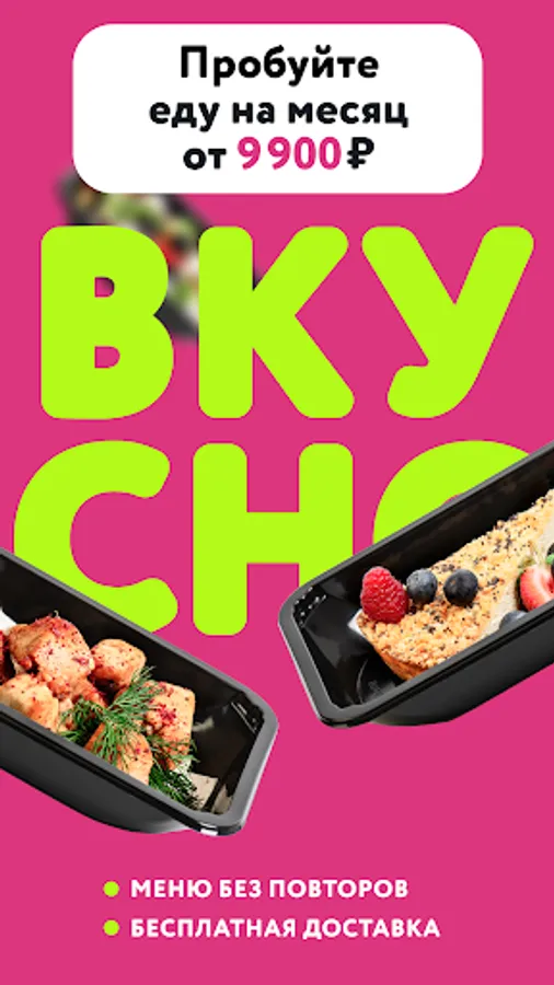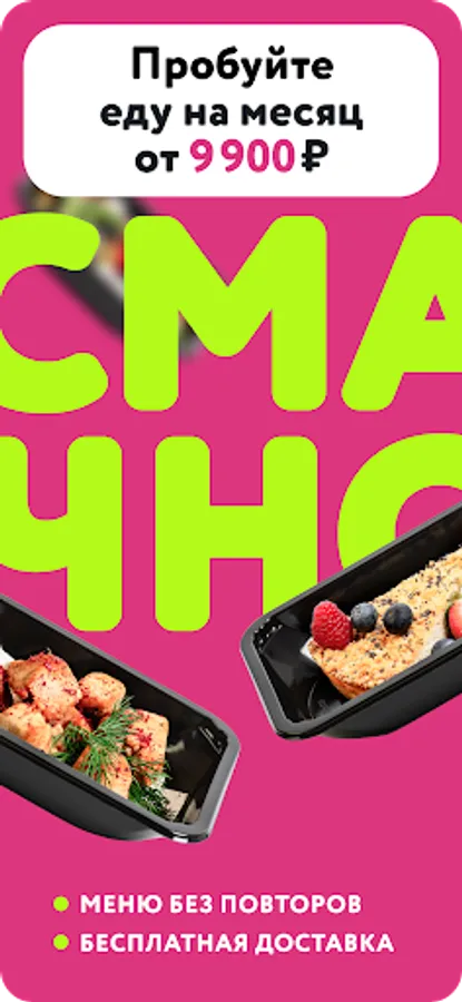 You no longer need to think about what dishes to cook for breakfast, lunch, dinner and what to take to work. We will cook and deliver delicious food at a convenient time and place for you in the morning for only 9900 rubles. for 30 days of food!