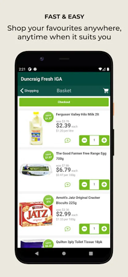 Shop for groceries at Foodies Market in West Australia using this easy app. Simply scan barcodes to add to your basket or browse the aisles, just like in-store. You can view your last order and your frequent purchases and add them quickly to your basket again. Choose between home delivery or store collection, then check out conveniently and securely in moments using the Foodies Market app. If you’ve started an order at your computer, you can continue it in the app and vice-versa. Too easy! The Foodies Market app lets you shop online for Foodies Market stores in Perth and surrounds.